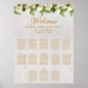 Le tableau de sièges mariage comporte 13 tables. .Sur la bordure supérieure, il y a des lys calla blancs et des fougères. L'arrière - plan est en marbre blanc. Les noms de la mariée et du marié sont écrits dans un élégant script calligraphique. Tout le texte a une couleur dorée. Les lys calla blancs et la fougère proviennent d'une carte de voeux vintage de Bertha Maguire (1862-1910), désormais dans le domaine public.