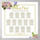Ce tableau de 13 sièges mariages vous permettra de trouver facilement les tables qui vous sont assignées à la réception. Il présente du texte en or sur un arrière - plan blanc avec une bordure carré décalée en or et un beau bouquet pastel printanier de fleurs comprenant des roses roses, des lys et orchidées blancs calla, et des hydrangées violettes ou lavandes claires. Le texte inclut le nom du couple et la date du mariage, et est entièrement personnalisable.