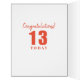 Grande carte d'anniversaire pour un 13ème anniversaire. Le design comporte un collage photo en forme d'un grand numéro 13, que vous pouvez rendre unique avec vos propres photos. Téléchargez vos propres photos et, à partir du haut de chaque numéro, elles apparaîtront automatiquement comme un numéro 13 soigné. Le texte au recto de la carte dit "Joyeux anniversaire de nous tous !" et vous êtes invités à le modifier si vous le souhaitez (par exemple, vous pouvez mettre une fille ou un nom à la place). A l'intérieur, on peut lire : "Félicitations ! 13 aujourd'hui" et "Joyeux 13e anniversaire" ainsi que votre propre message personnalisé.