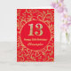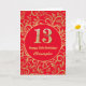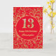 13e Anniversaire Carte d'Anniversaire Rouge et Or Floral. Pour plus de personnalisation, cliquez sur le bouton "Customiser" et utilisez notre outil de conception pour modifier ce modèle.