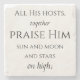 Eine Reihe von acht Untersetzer, die die Texte zum ersten Vers der Hymnversion von Psalm 148 enthalten: "Hallelujah, loben Jehovah, aus den Himmeln loben Sein Name..."