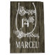 Dieses luxuriöse und formale Geschenktütendesign mit Geburtstagsgeschenk enthält die Meldung "Happy 14. Birthday", in opulentem Schrift-Stil, auf einem Imitat aus Holz inspiriert Muster Hintergrund. Es enthält auch einen benutzerdefinierbaren Empfängernamen. Eine extravagante Geburtstagsgeschenktüte wie diese ist vielleicht eine respektable Art, ein Geschenk oder Geschenk zu verpacken, das jemandem gegeben wird, der seinen vierzehnten Geburtstag feiert. [~Z0000558]