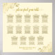 Diese schöne Hochzeitskarte beinhaltet Tischbelegungen für 140 Gäste an 14 Tischen. Das schlichte und dennoch elegante Design besticht durch goldenen Text auf einem cremefarbenen oder elfenbeinfarbenen Hintergrund mit einem laksigen Schriftzeichen-Titel. Die Ecken sind mit einem kühnen Imitat-Filigree mit Gardinen und Wirbel geschmückt. Stilvoll, elegant und raffiniert, um Ihren Gästen zu helfen, ihren Platz am Empfang zu finden.