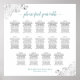 Diese schöne Hochzeitskarte beinhaltet Tischbelegungen für 140 Gäste an 14 Tischen. Das schlichte und dennoch elegante Design ist mit dunkelgrauem und aquamarinem oder türkisfarbenem Text auf weißem Hintergrund mit einem laky-Script-Kalligraphietitel ausgestattet. Die Ecken sind mit einem albernen Filigree aus Imitat mit Gardinen und Wirbel geschmückt. Stilvoll, elegant und raffiniert, um Ihren Gästen zu helfen, ihren Platz am Empfang zu finden.