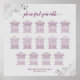 Diese schöne Hochzeitskarte beinhaltet Tischbelegungen für 140 Gäste an 14 Tischen. Das schlichte und dennoch elegante Design zeichnet sich durch magenta oder cassis lila Text auf grauem Hintergrund mit einem laky Script Kalligraphie Titel aus. Die Ecken sind mit einem silbernen, krümeligen Imitat-Filigree mit Gardinen und Wirbel geschmückt. Stilvoll, elegant und raffiniert, um Ihren Gästen zu helfen, ihren Platz am Empfang zu finden.