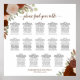 Ce beau tableau de 14 places mariage présente un design boho chic rustique à fleurs avec des roses aquarelles peints à la main et des feuillages de jardin dans les tons d'automne de rouille orange, pêche de corail, et le nombre brûlé. Il y a des places assises pour 140 personnes avec 10 places par table. Le titre est écrit en calligraphie de script dentée, et il y a de l'espace pour les noms du couple et de la date mariage ci-dessous. Une façon merveilleuse d'accueillir vos invités à la réception et de faciliter leur recherche de tables.