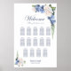 Aidez vos invités à trouver leur table avec ce tableau de sièges à fleurs de rose bleue et blanche mariage. Il convient à une mariage de 14 tables et 140 couverts.