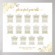 Ce magnifique tableau de sièges mariages comprend des assignations de table pour 140 personnes à 14 tables. Le design simple mais élégant présente du texte doré sur un arrière - plan blanc avec un titre de calligraphie de script lacy. Les coins sont décorés d'un faux fil frileux avec des boucles et des tourbillons. Une façon élégante, chic et sophistiquée d'aider vos clients à trouver leur place à la réception.