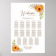 Ce tableau de sièges fleuris jaune et rose aidera vos invités à trouver leur table. Il peut accueillir un mariage de 14 tables et jusqu'à 140 convives.