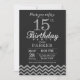 15. Geburtstag Einladung mit Schwarz und Silberner Glitzer Zickzack. Tafel. Kindergeburtstag. Junge oder Girl Bday einladen. Für weitere Anpassungen klicken Sie bitte auf die Schaltfläche "Anpassen" und verwenden Sie unser Designwerkzeug, um diese Vorlage zu ändern.