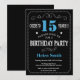 15. Geburtstag Einladung Blau und schwarze Typografie. Tafel. Schwarz-Weiß-Hintergrund Erwachsener Geburtstag. Männer oder Frauen zum Geburtstag. Kinder Junge oder Mädchen Lady Teenage Teenage Bday Einladen. 13. 15. 16. 18. 20. 21. 30. 40. 50. 60. 70. 80. 90. 100. Jedes Alter.
