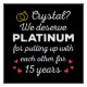Spaß Design, perfekt für jeden, der seit 15 Jahren verheiratet ist und für eine Hochzeitsfeier. Es ist ein hervorragendes passendes Outfit für Paare! "Crystal? Wir verdienen Platinum für die Erstellung eines 15-jährigen Zitats für ein Ehepaar, das vor 15 Jahren verheiratet got hat, oder für ein Paar, das sich zum Kristalljubiläum erneut verlieh. Sind Sie ein romantischer Ehemann oder eine romantische Ehefrau? Akzentuieren Sie Ihren Stil mit dieser Kunst! Ein tolles Geschenk für einen Freund, der vor 15 Jahren verheiratet got, Ehemann oder Ehefrau von 15 Jahren, oder Vater und Mutter feiern ihren 15. Hochzeitstag.