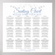 Faites de votre réception de mariage une belle avec ce tableau de sièges. Conçu dans le cadre de notre Suite de Mariage Elégante Bleue & Gris, il présente un design simple mais élégant avec du texte bleu clair & gris sur un arrière - plan blanc avec une bordure florale en faux feuille argent. Ce graphique montre les affectations de table afin que vos invités aient un temps facile à trouver la bonne table.