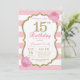 15e Invitation d'anniversaire. Le rose et l'or. Parties scintillant d'or. Les Grandes Têtes Roses et Blanches. Flore rose.Anniversaire enfant. Fête d'anniversaire de la Ado des adolescentes.