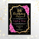 16. Geburtstag - Black Gold Rosa Roses Einladung