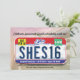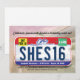 Ein Teenager, das 16 Jahre alt wird und seinen Führerschein bekommt, ist ein Meilenstein zum Feiern! Ich entwarf dieses Design, um das individuelle Staat-Nummernschild zu erfassen und es auf einen weichen Hintergrund zu setzen, der die Straße, die Autobahn und den Himmel einschließt.