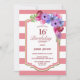 Rosa gestreifter Lavendel Blumen 16. Geburtstag Abendessen Party Einladung.