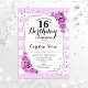 Einladung zum 16. Geburtstag. Elegantes weißes Lavendeldesign mit Imitat Glitzer. Weiße Streifen mit lila Rose. Ideal für eine elegante sechzehnte Geburtstagsfeier.