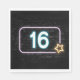 Glühendes Neonzeichen mit einem Stern an einer dunklen Ziegelmauer zum 16. Geburtstag.