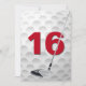 Nahes weißes Golfgeländer mit einem Golfclub zum 16. Geburtstag. Alter ist essbar. Alle Texte auf der Rückseite können geändert werden. Die Farbe des blauen Himmels kann geändert werden.