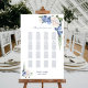Helfen Sie Ihren Gästen, ihren Tisch mit dieser blauen und weißen Rosenblütenkarte zu finden. Es ist für eine Hochzeit mit 16 Tischen und 160 Gästen geeignet.