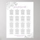 Ce magnifique tableau de sièges mariages comprend des assignations de table pour 160 personnes, avec 10 personnes à chaque table. Le design est simple mais élégant avec du gris foncé et du texte violet clair ou lavande sur un arrière - plan blanc et dispose d'une ficelle argent en dentelle dans les coins avec la calligraphie script sophistiquée avec "s'il vous plaît trouver votre table." Sophistiqué et chic.