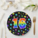 Dieses lustige, fröhliche und farbenfrohe Papier-Plattendesign zeichnet sich durch eine große Zahl "16" mit einem inspirierten Regenbogenspektrum aus. Der Hintergrund weist ein Muster von bunten Sternformen auf. Teller dieser Art können in einem Party zum sechzehnten Geburtstag eines Mannes, zum sechzehnten Geburtstag eines Ehepaars oder zum sechzehnten Geburtstag oder zu einem anderen 16. Mal verwendet werden. [~Z0000493]