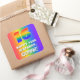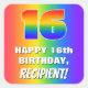 This fun and joyful birthday themed square sticker design features a large number “16” with a colorful rainbow spectrum inspired gradient pattern, along with the message “HAPPY 16th BIRTHDAY,”, and a customizable recipient name. The background also features a vibrant multicolored rainbow spectrum inspired gradient pattern. Fun, cheerful, personalized stickers like this might be given as a birthday gift, or used while wrapping presents/gifts, or perhaps used as a birthday party decoration when celebrating somebody’s 16th birthday. [~Z0000571]