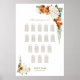 Aidez vos invités à trouver leur table avec ce tableau de sièges à fleurs de rose blanche et orange brûlé. Il convient à une mariage de 17 tables et 170 couverts.