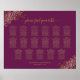 Ce tableau contient les assignations de table pour 170 invités à 17 tables, 10 invités par table. Le design est simple mais élégant avec du texte doré sur un magenta ou un cassis violet arrière - plan et de la fausse dentelle dorée dans les coins. Belle façon d'aider vos invités à trouver la bonne table à votre réception de mariage. Le titre dit "s'il vous plaît trouvez votre table" dans élégante calligraphie de script.