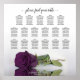 Ce tableau de 17 places mariage a des assignations de table pour 170 personnes (10 personnes par table). Le design est élégant, élégant, moderne, romantique et chic, avec un seul rose à long tige de prune violet ou aubergine reflétant dans l'eau avec des vagues et des ondulations. Il y a un titre de calligraphie de script sophistiqué qui dit "s'il vous plaît trouver votre table" ainsi que l'espace pour les noms du couple et la date du mariage. Un excellent moyen de rendre votre réception belle tout en aidant vos invités à trouver le siège droit.