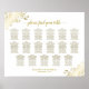 Ce tableau contient les assignations de table pour 170 invités à 17 tables, 10 invités par table. Le design est simple mais élégant avec du texte en or sur un arrière - plan blanc et des plis en faux feuille d'or dans les coins. Belle façon d'aider vos invités à trouver la bonne table à votre réception de mariage. Le titre dit "s'il vous plaît trouvez votre table" dans élégante calligraphie de script.