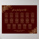 Ce tableau contient les assignations de table pour 170 invités à 17 tables, 10 invités par table. Le design est simple mais élégant avec du texte doré sur un arrière - plan de couleur chocolat ou auburn et de la fausse dentelle d'or dans les coins. Belle façon d'aider vos invités à trouver la bonne table à votre réception de mariage. Le titre dit "s'il vous plaît trouvez votre table" dans élégante calligraphie de script.
