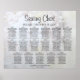 Faites de votre réception de mariage une belle avec ce tableau de sièges. Conçu dans le cadre de notre Suite de Mariage Réflexions Blanches, il présente du texte noir sur un arrière - plan reflétant des fleurs et des coeurs blancs. Ce graphique montre les affectations de table afin que vos invités aient un temps facile à trouver la bonne table.