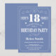 18. Geburtstag Einladung Blau und Weiße Typografie. Blau und Weiß Hintergrund. Erwachsener Geburtstag. Männer oder Frauen zum Geburtstag. Kinder Junge oder Mädchen Lady Teenage Teenage Bday Einladen. 13. 15. 16. 18. 20. 21. 30. 40. 50. 60. 70. 80. 90. 100. Jedes Alter.
