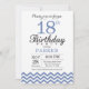 18. Geburtstag Einladung mit Blue Zickzack.Schwarz und Weiß. Erwachsener Geburtstag. Mann oder Frauen laden ein.