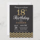 18. Geburtstag Einladung mit Gold Glitzer Zickzack. Schwarz-Gold-Glitzer. Erwachsener Geburtstag. Mann oder Frauen laden ein.
