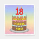 Dieses optimistische und farbenfrohe Geburtstagszeitpapier-Serviettendesign zeigt einen dreistufigen Geburtstagskuchen mit numeralförmigen Kerzen oben, die die Zahl "18" zeigen, zusammen mit der Meldung "GLÜCKLICHER 18. BIRTHTAG" und einem bearbeitbaren Empfängernamen. Der Hintergrund weist ein mehrfarbiges pastellfarbenes Regenbogenspektrum auf, das durch inspirierte Farbverlaufsmuster gekennzeichnet ist. Fröhliche Papierservietten wie diese können verwendet werden, wenn ein Party für jemanden zum 18. Geburtstag veranstaltet wird. [~Z0000623]