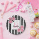 18. Geburtstag rosa Blume Schwarz-weiße Streifen Pappteller