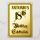 An der Vorderseite dieses aufwändigen achtzehnten Geburtstagsgeschehens steht die Nachricht "18. Geburtstagsfeier" im verzierten Script-Stil. Es enthält auch einen personalisierten Namen. Auf der Rückseite finden Sie personalisierte Details zum Ereignis, wie Datum, Uhrzeit, Veranstaltungsort/Veranstaltungsort und alle weiteren wichtigen Informationen. Extravagante, luxuriöse, bearbeitbare Einladungen wie diese können genutzt werden, um die Gäste zu einer Geburtstagsfeier/Party einzuladen, die zur Feier des achtzehnten Geburtstages von jemandem abgehalten wird. [~Z0000596]