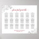 Diese Sitzplakette hilft Ihren Gästen, ihre Tische an Ihrem Hochzeitsempfang zu finden. Es zeichnet sich durch ein schlichtes, aber elegantes Design aus, mit dunkelgrauem und rotem Text auf weißem Hintergrund. Der Titel ist in schöner Schrift-Kalligrafie geschrieben und liest: Bitte finden Sie Ihren Tisch. Das Design zeichnet sich durch eine laky florale Imitate Folie silberne Filigree in den Ecken. Enthält Sitzplätze für 18 Tische für 10 Personen pro Tisch oder 180 Gäste.