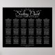 Faites de votre réception de mariage une belle avec ce tableau de sièges. Conçu dans le cadre de notre Silver Foil Elegant Wedding Suite, il présente un design simple mais élégant avec du texte gris argenté pâle sur un arrière - plan noir avec une bordure florale en faux feuille argent. Ce graphique montre les affectations de table afin que vos invités aient un temps facile à trouver la bonne table.
