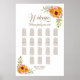 Ce tableau de sièges fleuris jaune et rose aidera vos invités à trouver leur table. Il peut accueillir un mariage de 18 tables et jusqu'à 180 convives.