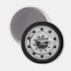 Für LKWs und diejenigen, die sie gerne wären. Ein Magnet mit einem nah aufgestellten Bild eines LKW-Rades und dem in der Mitte überlagerten LKWs.