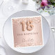 Elegant, classic, glamorous and girly for a 18th birthday party. Rose gold and blush gradient background. Decorated with rose gold, faux glitter, sparkles. Personalize and add a name. The name is written with a modern dark rose colored hand lettered style script. Number 18 is written with a balloon style font.