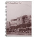 Notebook mit einer altmodischen Baldwin Dampflokomotive mit dem Ingenieur, der vorne sitzt.