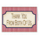 Folded glossy Thank You note de notre série originale de Mariages à thème rouge, blanc et bleu, qui reflète les styles graphiques populaires dans la campagne présidentielle américaine de 1904 (qui a été remportée par Teddy Roosevelt, célèbre pour son Show-No-Fear "Rough Rider" jours dans la guerre espagnole américaine et ses déclarations enthousiaste de "Bully" quand quelque chose, ou quelqu'un a pilkled son ancy).