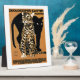Antiquitätenposter von Ludwig Hohlwein aus dem Jahr 1912 zur Förderung des Münchner Zoologischen Gartens mit Leoparden, die von einem schwarzen Panther geschmückt sind.