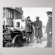 Das Foto zeigt zwei Männer, einen wahrscheinlich Afroamerikaner, und einen Polizeibeamten, der neben einem Motorrad (oder vielleicht zwei Motorrädern) mit einem Sidecar stehend ist, in der Nähe der US-Hauptstadt. Ein Mann hält einen Fuchs. Titel bei LOC sagt "Geo. M. Green'. Foto der National Foto Company aufgenommen 1918 bis 1920. LOC Originalmedium: Glasnegativ.