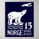 Die 1925 Norwegische 15 Ore Air Mail Porto Briefmarke. Auf der Briefmarke befindet sich ein Polar-Bär auf einer Eisdecke, der ein Flugzeug beobachtet, das den Postversand ausstellt. Dieses Design ist in dunkelblau, weiß und hellblau erhältlich.